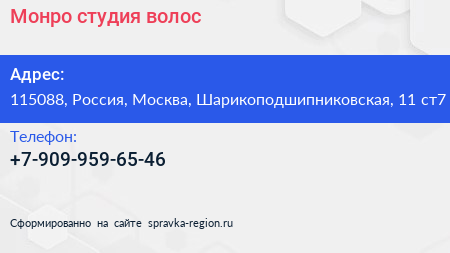 Монро, студия волос по адресу 115088, Россия, Москва, Шарикоподшипниковская, 11 ст7 в дальнейшем Организация, размещена в следующих категориях: