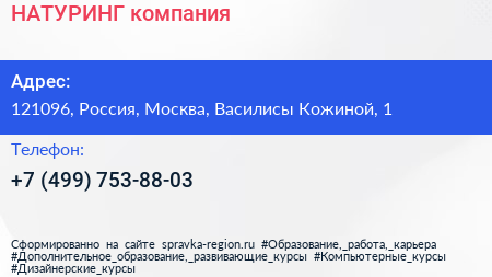 НАТУРИНГ, компания по адресу 121096, Россия, Москва, Василисы Кожиной, 1 в дальнейшем Организация, размещена в следующих категориях: