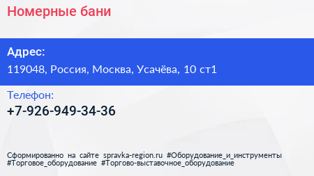 Номерные бани по адресу 119048, Россия, Москва, Усачёва, 10 ст1 в дальнейшем Организация, размещена в следующих категориях:
