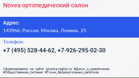 Novea, ортопедический салон по адресу 143966, Россия, Москва, Ленина, 25 в дальнейшем Организация, размещена в следующих категориях: