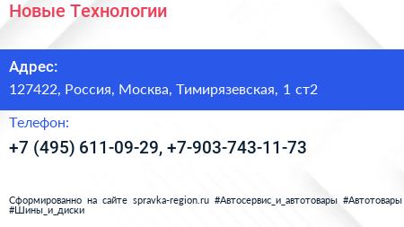 Новые Технологии по адресу 127422, Россия, Москва, Тимирязевская, 1 ст2 в дальнейшем Организация, размещена в следующих категориях: