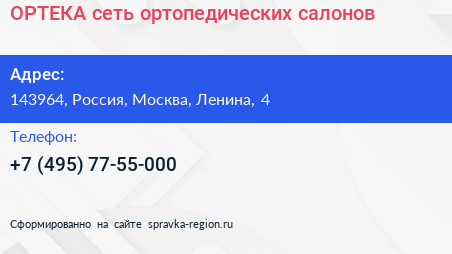 ОРТЕКА, сеть ортопедических салонов по адресу 143964, Россия, Москва, Ленина, 4 в дальнейшем Организация, размещена в следующих категориях: