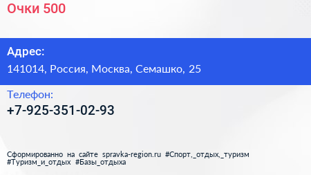 Очки 500 по адресу 141014, Россия, Москва, Семашко, 25 в дальнейшем Организация, размещена в следующих категориях: