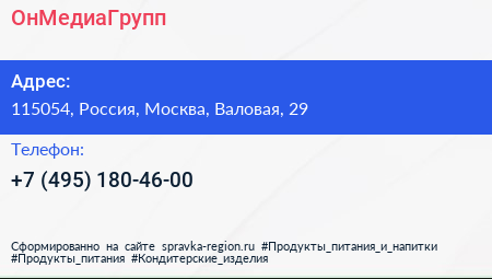ОнМедиаГрупп по адресу 115054, Россия, Москва, Валовая, 29 в дальнейшем Организация, размещена в следующих категориях: