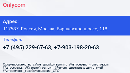 Onlycom по адресу 117587, Россия, Москва, Варшавское шоссе, 118 в дальнейшем Организация, размещена в следующих категориях: