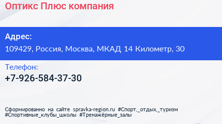Оптикс Плюс, компания по адресу 109429, Россия, Москва, МКАД 14 Километр, 30 в дальнейшем Организация, размещена в следующих категориях: