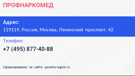 ПРОФНАРКОМЕД по адресу 119119, Россия, Москва, Ленинский проспект, 42 в дальнейшем Организация, размещена в следующих категориях: