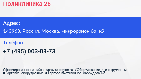 Поликлиника 28 по адресу 143968, Россия, Москва, микрорайон 6а, к9 в дальнейшем Организация, размещена в следующих категориях: