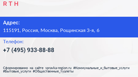 R.T.H. по адресу 115191, Россия, Москва, Рощинская 3-я, 6 в дальнейшем Организация, размещена в следующих категориях: