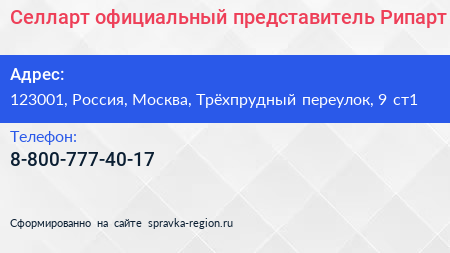 Селларт, официальный представитель Рипарт по адресу 123001, Россия, Москва, Трёхпрудный переулок, 9 ст1 в дальнейшем Организация, размещена в следующих категориях: