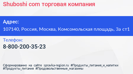 Shuboshi.com, торговая компания по адресу 107140, Россия, Москва, Комсомольская площадь, 3а ст1 в дальнейшем Организация, размещена в следующих категориях:
