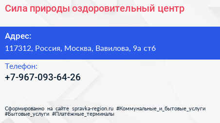 Сила природы, оздоровительный центр по адресу 117312, Россия, Москва, Вавилова, 9а ст6 в дальнейшем Организация, размещена в следующих категориях: