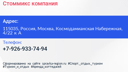 Стоммикс, компания по адресу 115035, Россия, Москва, Космодамианская Набережная, 4/22 к А в дальнейшем Организация, размещена в следующих категориях: