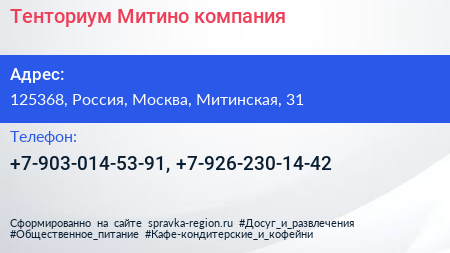 Тенториум-Митино, компания по адресу 125368, Россия, Москва, Митинская, 31 в дальнейшем Организация, размещена в следующих категориях: