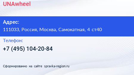 UNAwheel по адресу 111033, Россия, Москва, Самокатная, 4 ст40 в дальнейшем Организация, размещена в следующих категориях: