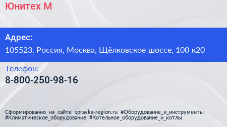 Юнитех-М по адресу 105523, Россия, Москва, Щёлковское шоссе, 100 к20 в дальнейшем Организация, размещена в следующих категориях: