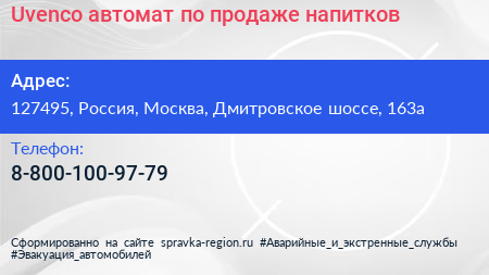 Uvenco, автомат по продаже напитков по адресу 127495, Россия, Москва, Дмитровское шоссе, 163а в дальнейшем Организация, размещена в следующих категориях: