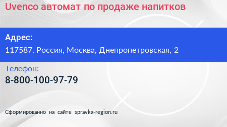 Uvenco, автомат по продаже напитков по адресу 117587, Россия, Москва, Днепропетровская, 2 в дальнейшем Организация, размещена в следующих категориях: