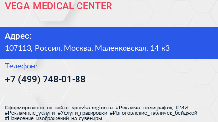 VEGA MEDICAL CENTER по адресу 107113, Россия, Москва, Маленковская, 14 к3 в дальнейшем Организация, размещена в следующих категориях: