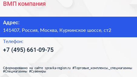 ВМП, компания по адресу 141407, Россия, Москва, Куркинское шоссе, ст2 в дальнейшем Организация, размещена в следующих категориях: