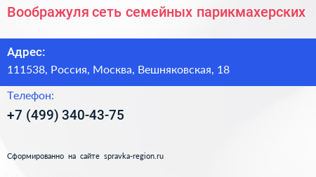 Воображуля, сеть семейных парикмахерских по адресу 111538, Россия, Москва, Вешняковская, 18 в дальнейшем Организация, размещена в следующих категориях: