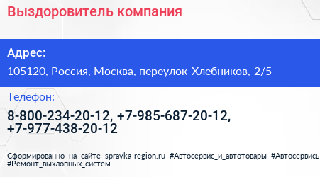 Выздоровитель, компания по адресу 105120, Россия, Москва, переулок Хлебников, 2/5 в дальнейшем Организация, размещена в следующих категориях: