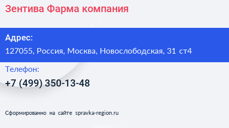 Зентива Фарма, компания по адресу 127055, Россия, Москва, Новослободская, 31 ст4 в дальнейшем Организация, размещена в следующих категориях: