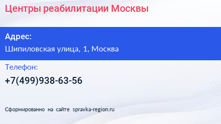 Центры реабилитации Москвы по адресу Шипиловская улица, 1, Москва в дальнейшем Организация, размещена в следующих категориях: