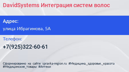 DavidSystems - Интеграция систем волос по адресу улица Ибрагимова, 5А в дальнейшем Организация, размещена в следующих категориях: