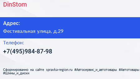 DinStom по адресу Фестивальная улица, д.29 в дальнейшем Организация, размещена в следующих категориях: