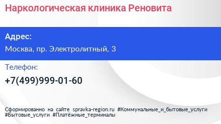 Наркологическая клиника «Реновита» по адресу Москва, пр. Электролитный, 3 в дальнейшем Организация, размещена в следующих категориях: