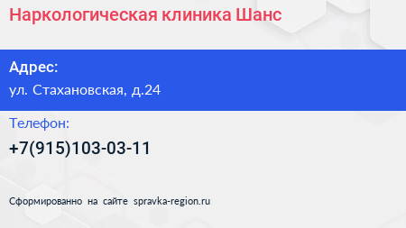 Наркологическая клиника «Шанс+» по адресу ул. Стахановская, д.24 в дальнейшем Организация, размещена в следующих категориях:
