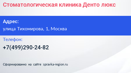 Стоматологическая клиника Денто-люкс по адресу улица Тихомирова, 1, Москва в дальнейшем Организация, размещена в следующих категориях: