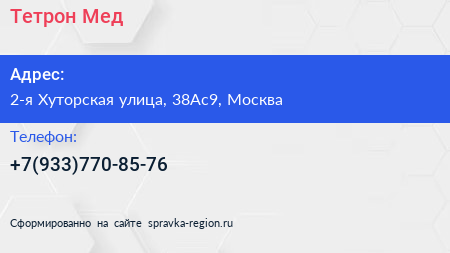 Тетрон Мед по адресу 2-я Хуторская улица, 38Ас9, Москва в дальнейшем Организация, размещена в следующих категориях: