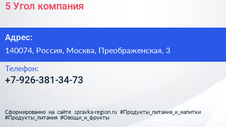 5 Угол, компания по адресу 140074, Россия, Москва, Преображенская, 3 в дальнейшем Организация, размещена в следующих категориях: