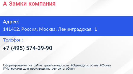 А-Замки, компания по адресу 141402, Россия, Москва, Ленинградская, 1 в дальнейшем Организация, размещена в следующих категориях: