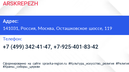 ARSKREPEZH по адресу 141031, Россия, Москва, Осташковское шоссе, 119 в дальнейшем Организация, размещена в следующих категориях: