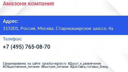 Амазони, компания по адресу 115201, Россия, Москва, Старокаширское шоссе, 4а в дальнейшем Организация, размещена в следующих категориях: