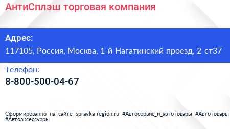 АнтиСплэш, торговая компания по адресу 117105, Россия, Москва, 1-й Нагатинский проезд, 2 ст37 в дальнейшем Организация, размещена в следующих категориях:
