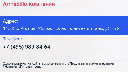 Armadillo, компания по адресу 115230, Россия, Москва, Электролитный проезд, 3 ст2 в дальнейшем Организация, размещена в следующих категориях: