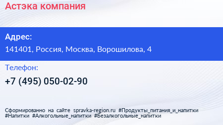 Астэка, компания по адресу 141401, Россия, Москва, Ворошилова, 4 в дальнейшем Организация, размещена в следующих категориях: