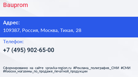 Bauprom по адресу 109387, Россия, Москва, Тихая, 28 в дальнейшем Организация, размещена в следующих категориях:
