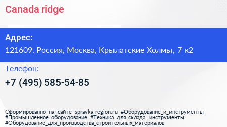 Canada ridge по адресу 121609, Россия, Москва, Крылатские Холмы, 7 к2 в дальнейшем Организация, размещена в следующих категориях: