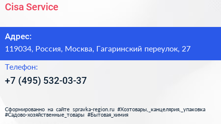 Cisa Service по адресу 119034, Россия, Москва, Гагаринский переулок, 27 в дальнейшем Организация, размещена в следующих категориях: