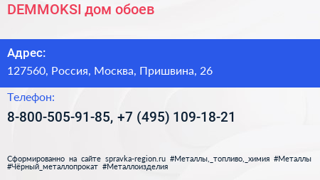 DEMMOKSI, дом обоев по адресу 127560, Россия, Москва, Пришвина, 26 в дальнейшем Организация, размещена в следующих категориях: