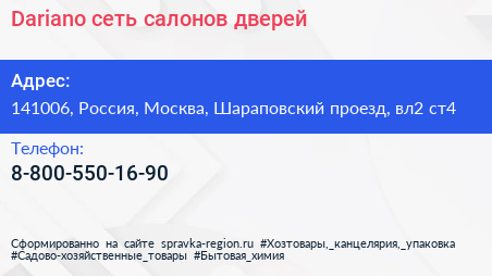 Dariano, сеть салонов дверей по адресу 141006, Россия, Москва, Шараповский проезд, вл2 ст4 в дальнейшем Организация, размещена в следующих категориях: