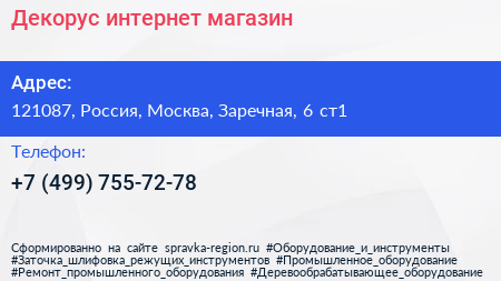 Декорус, интернет-магазин по адресу 121087, Россия, Москва, Заречная, 6 ст1 в дальнейшем Организация, размещена в следующих категориях: