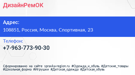ДизайнРемОК по адресу 108851, Россия, Москва, Спортивная, 23 в дальнейшем Организация, размещена в следующих категориях: