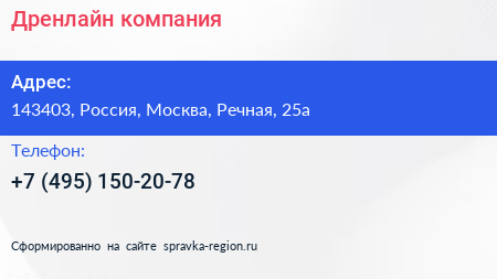 Дренлайн, компания по адресу 143403, Россия, Москва, Речная, 25а в дальнейшем Организация, размещена в следующих категориях: