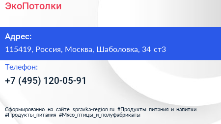 ЭкоПотолки по адресу 115419, Россия, Москва, Шаболовка, 34 ст3 в дальнейшем Организация, размещена в следующих категориях: